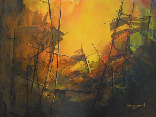 Ich hoffe, dass es aufgefallen ist: Für das Übergangsfeld von gegenständlicher und abstrakter Malerei ist der Begriff „Grauzone“ eine unzulässige Bezeichnung. Denn meist geht es gerade in diesem Übergangsfeld nicht grau, sondern äußerst farbenfroh zu. Allenfalls grauenhaft.